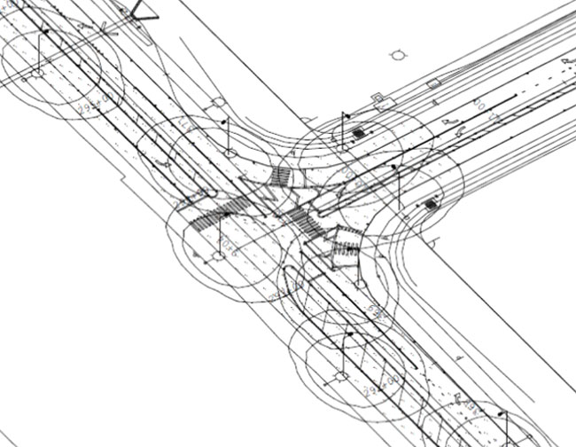 Roadways are designed and analyzed with actual roadway conditions and plans. Using three dimensional representations of lighting fixtures and poles, energy efficiencies and lighting conditions are predetermined for new roadway lighting and construction projects.